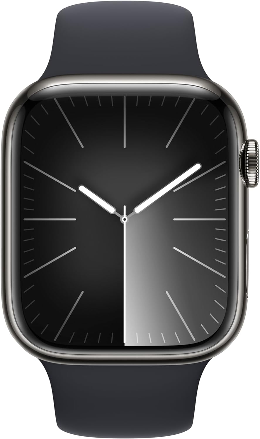 Apple Watch Series 9 [GPS + Cellular 45mm] Smartwatch with Graphite Stainless Steel Case with Midnight Sport Band M/L. Fitness Tracker, Blood Oxygen & ECG Apps, Always-On Retina Display