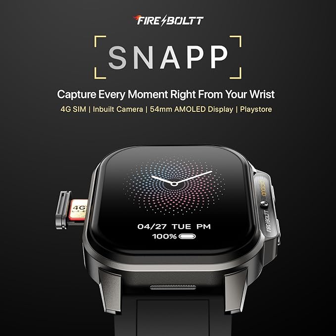 Fire Boltt Snapp Smart Watch Selfie Camera 4G Nano SIM Slot 54.1mm AMOLED Display