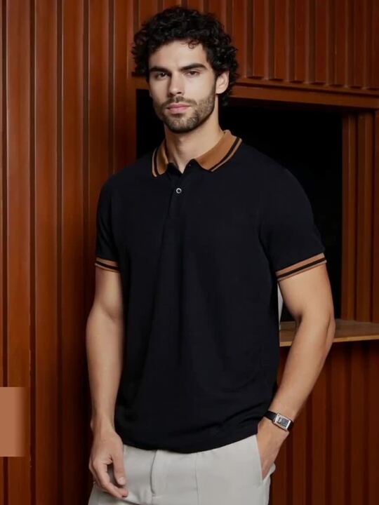 Men Self Design Polo Collar Cotton T-Shirt  – is a premium men’s apparel essential designed for comfort,