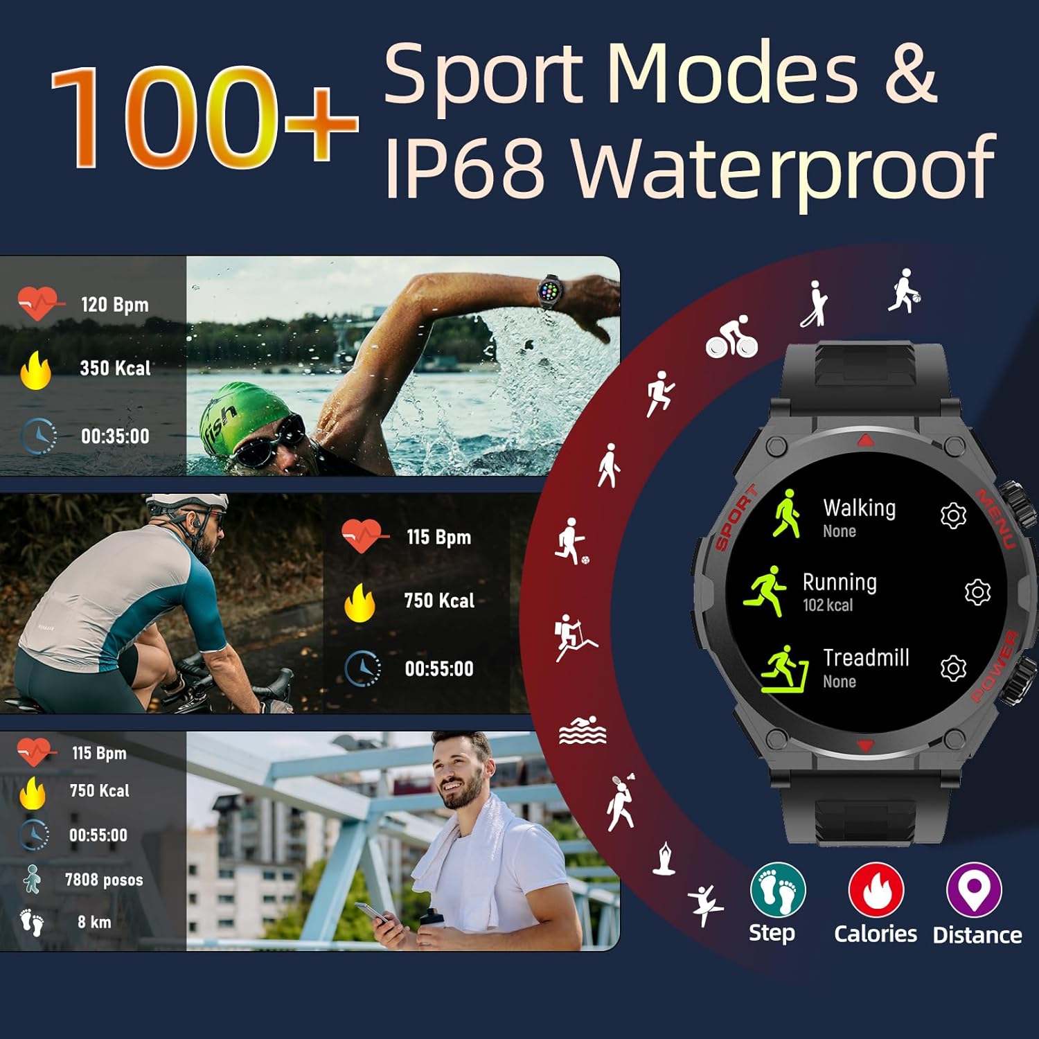 Military Smart Watch for Men, 1.52″ HD Fitness Tracker Smartwatch with Answer/Make Call, Sport Watch with Heart Rate SpO2 Stress, Sleep Monitor Compatible with iPhone and Android Phones