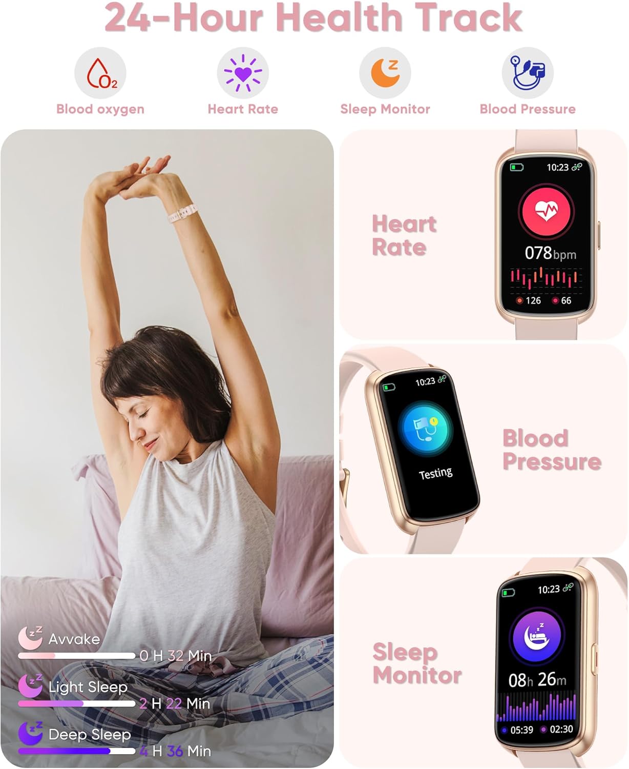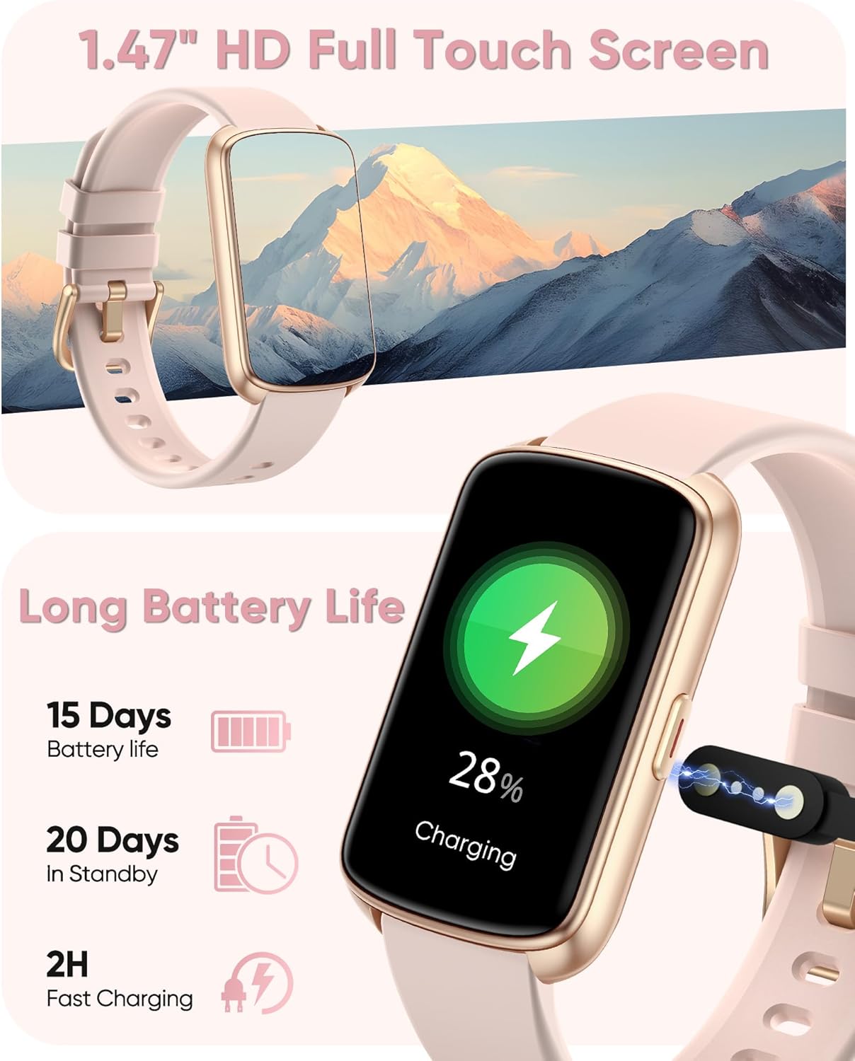 Smart Watch, 1.47″ Health Fitness Tracker with 24/7 Heart Rate,Blood Pressure,Blood Oxygen Monitor,Sleep Tracker,Pedometer, IP68 Waterproof Activity Trackers Compatible with Android&iPhone Women Men