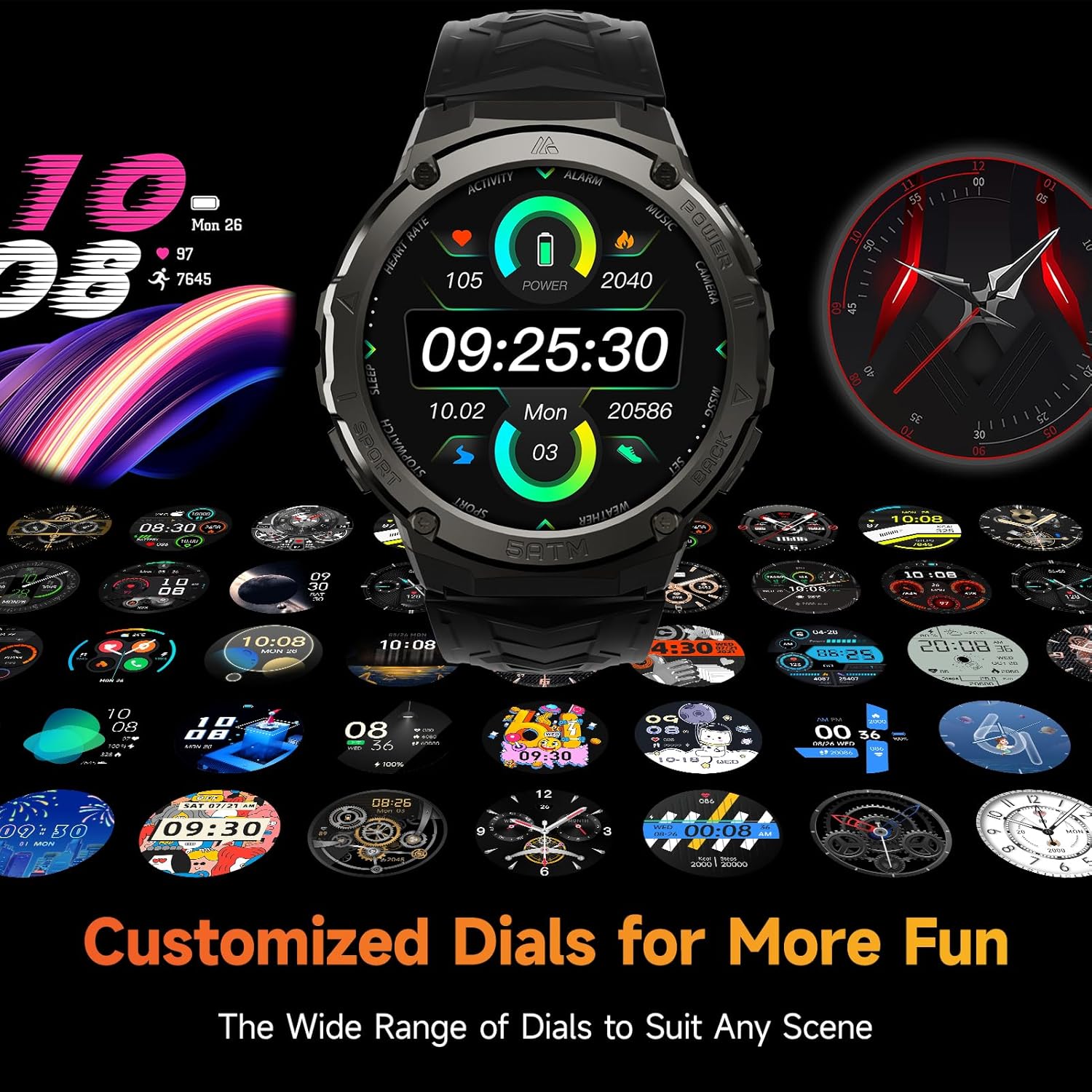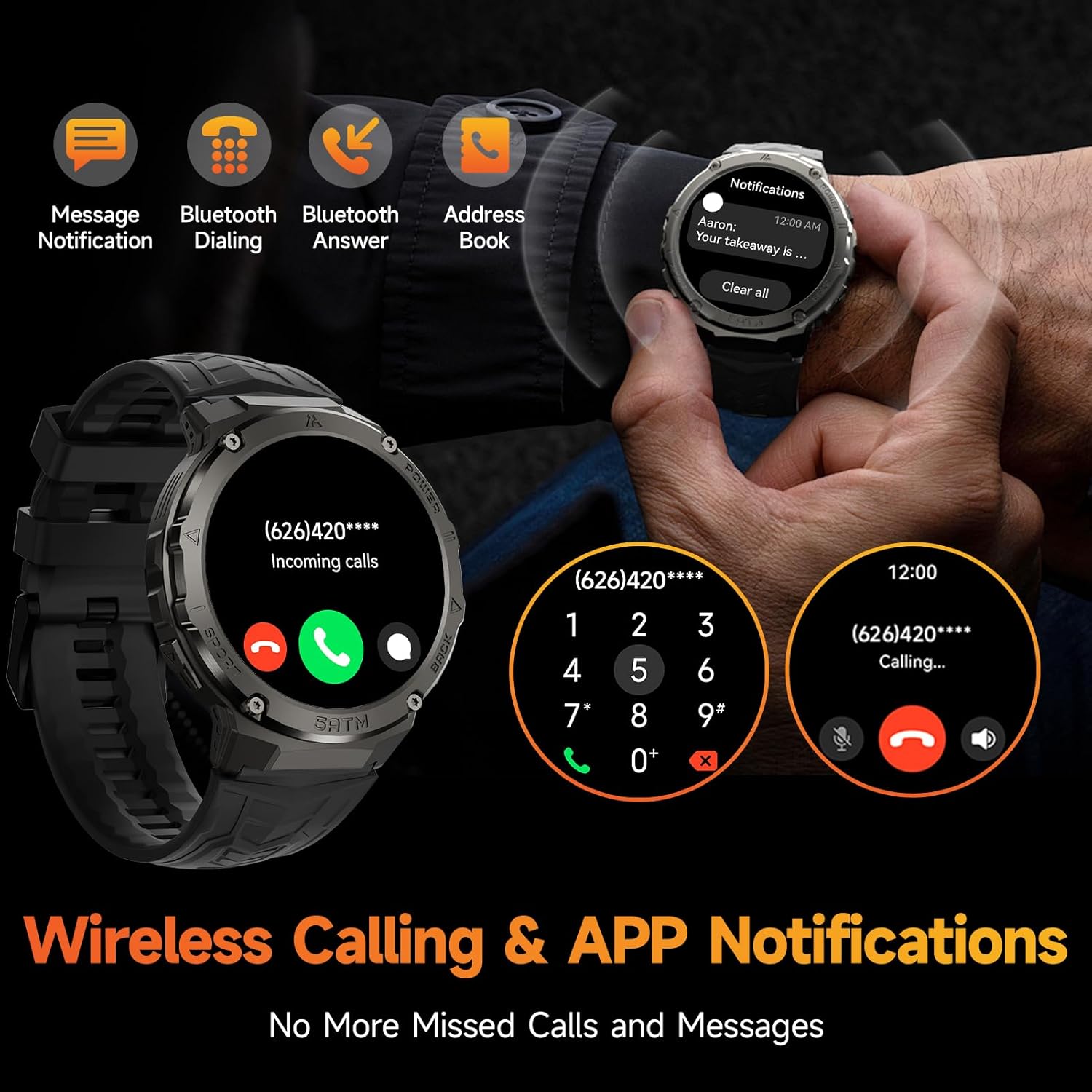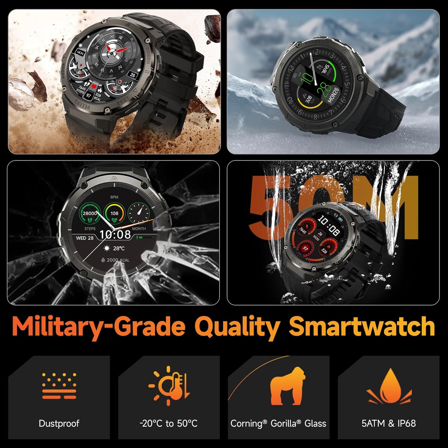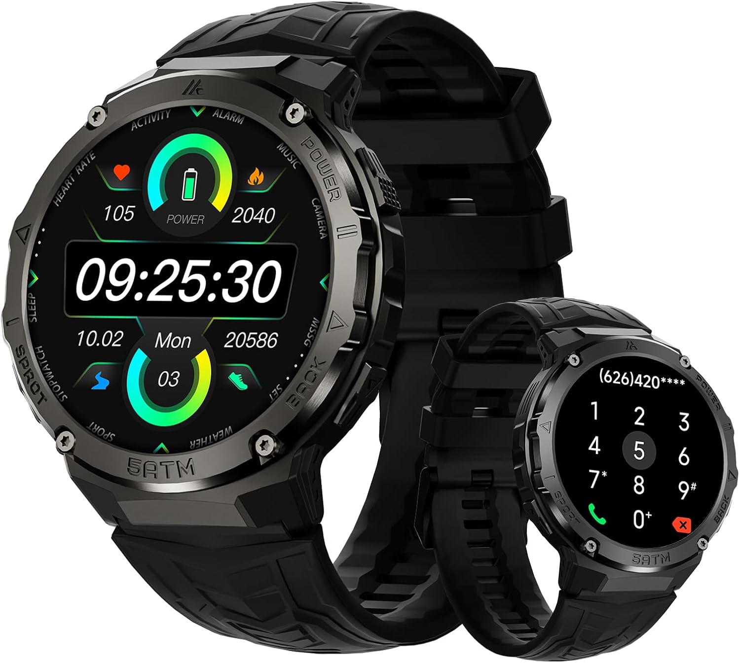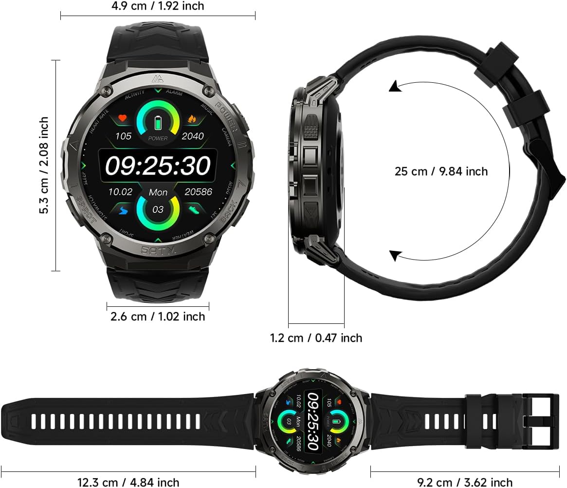 Military Smart Watches for Men IP68 Waterproof for Swimming, with Answer/Make Calls, 80 Days Extra-Long Battery Outdoor Tactical Smart Fitness Watch, Blood Pressure/Heart Rate Smartwatch for Android