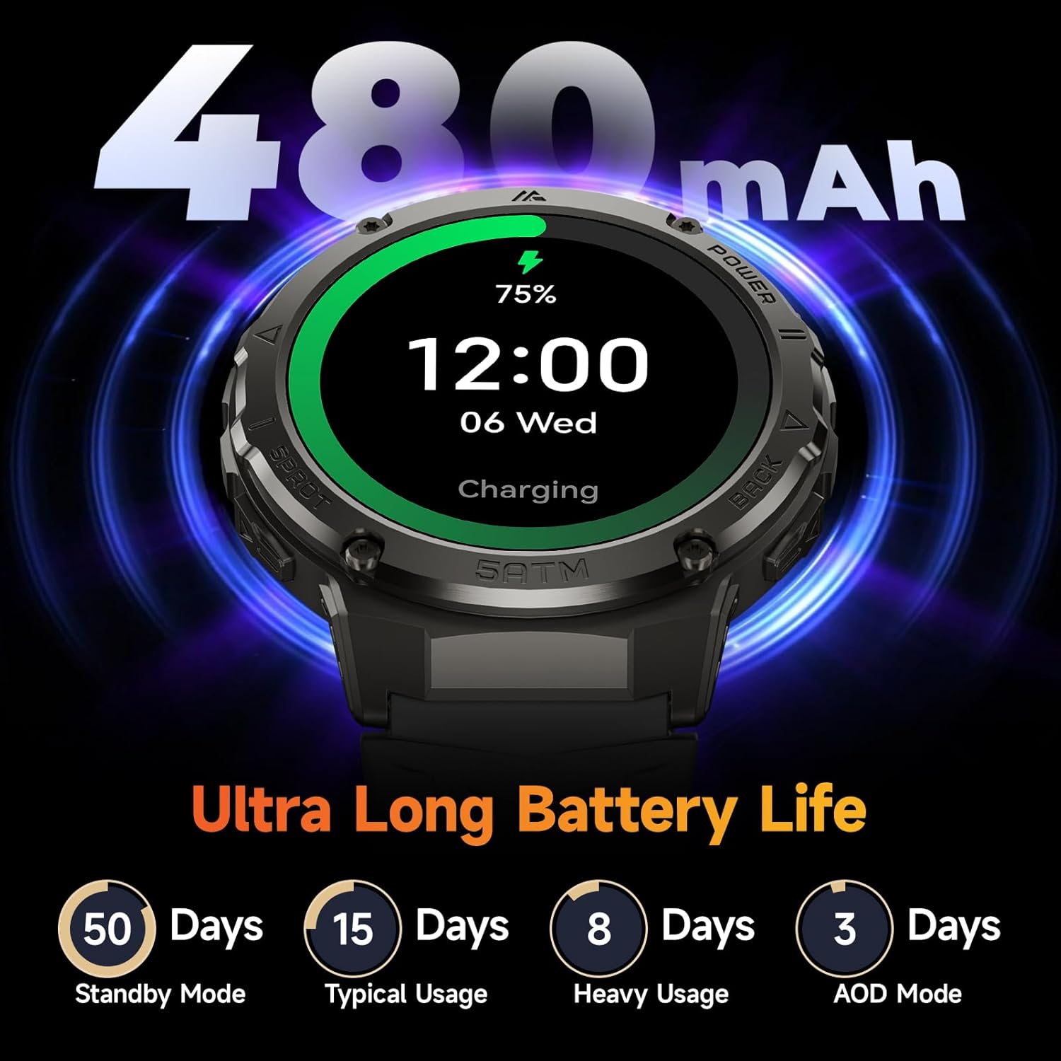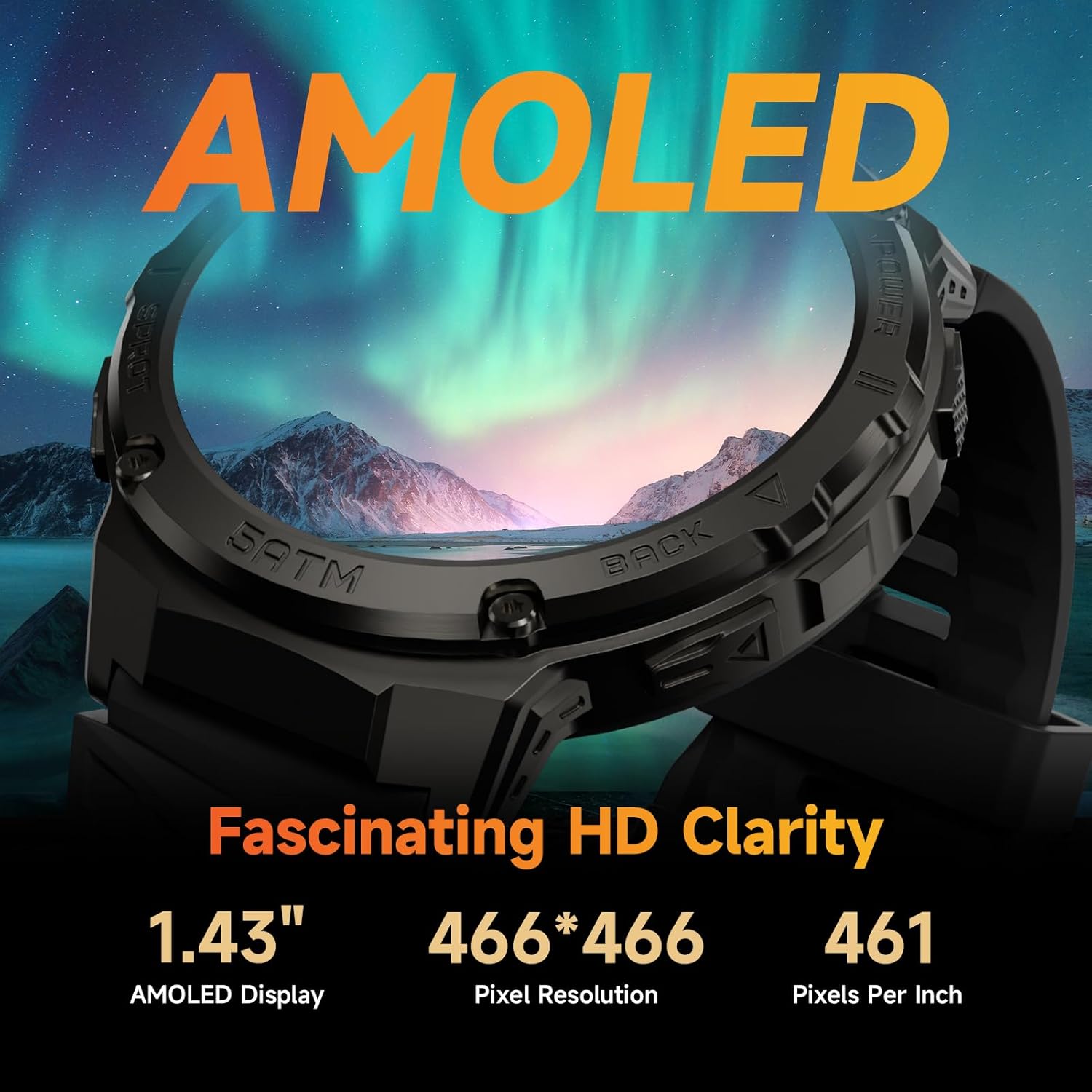 Smart Watch for Men Women, 1.43″ AMOLED Fitness Tracker, 50M Waterpoof Sport Watch with Heart Rate/SpO2/Sleep Monitor/Pedometer, 480mAh Military Smartwatch(Answer/Dial Call) for Android iOS