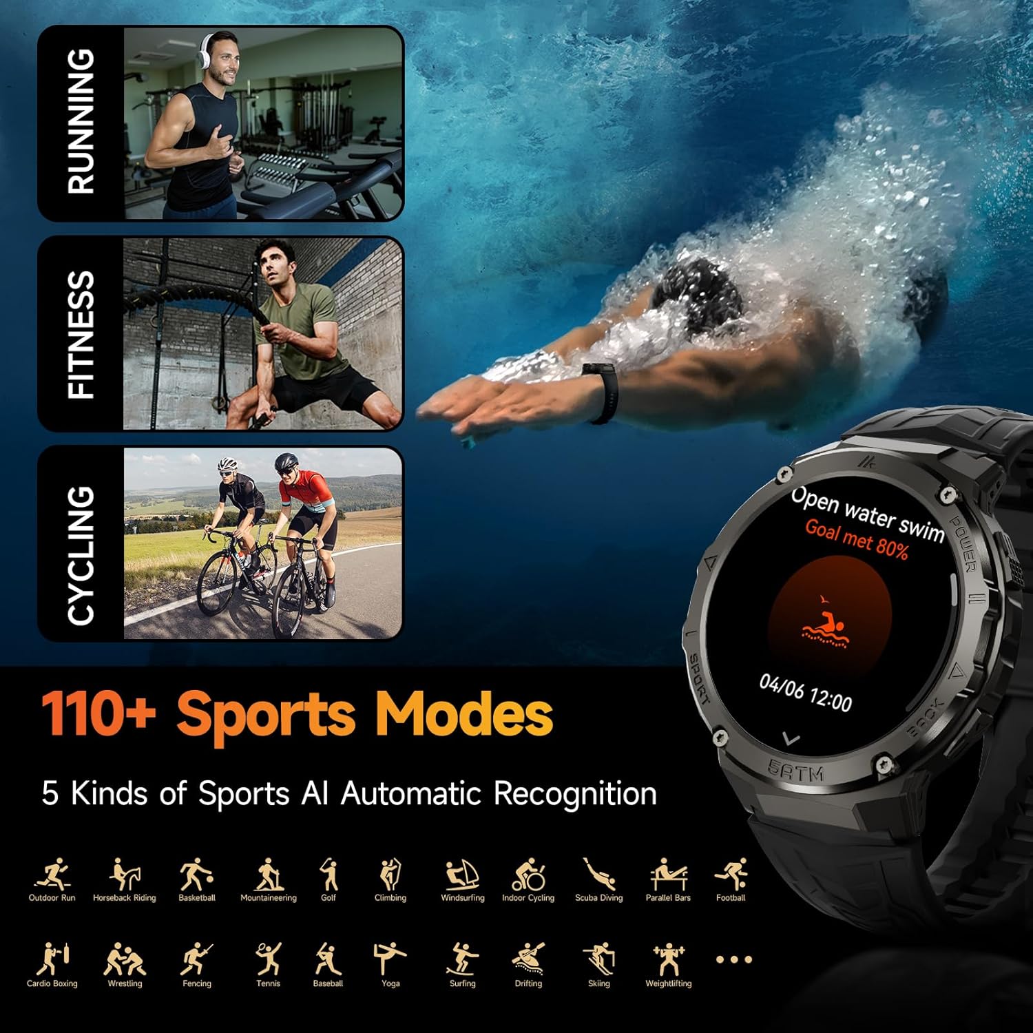 Smart Watch,1.91″ Smartwatch for Men Women (Answer/Make Call),Fitness Tracker with 116 Sport Modes,IP68 Waterproof,Heart Rate/Sleep/Monitor,Long Battery Life,for iPhone & Android & Samsung