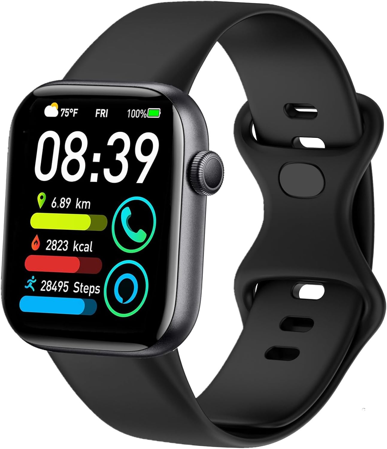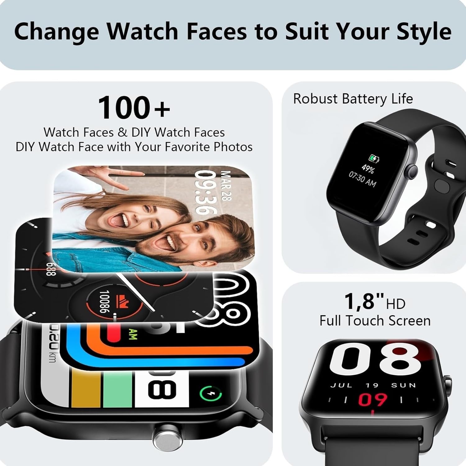 Smart Watch for Men Women Kids – 1.85″ Smartwatch Fitness Tracker with Sport Modes, Monitor Blood Oxygen, Heart Rate, Sleep and Answer/Make Calls with Ease Compatible IOS Android Phones (Black)