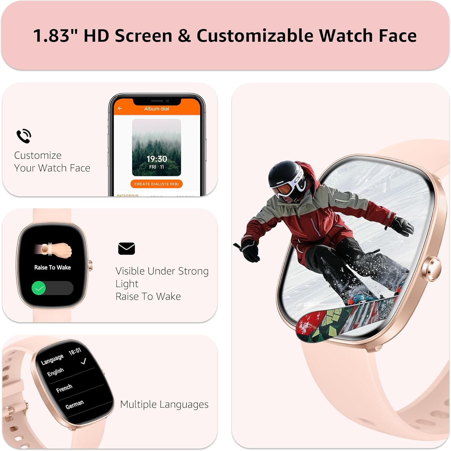 Hwagol Smart Watch (Answer/Make Call) 2024 Newest 1.85 Inch Fitness Tracker, Heart Rate/Sleep Monitor/Pedometer/Calories, Multiple Sport Modes, AI Voice Smart Watches for Women Android iOS Phones