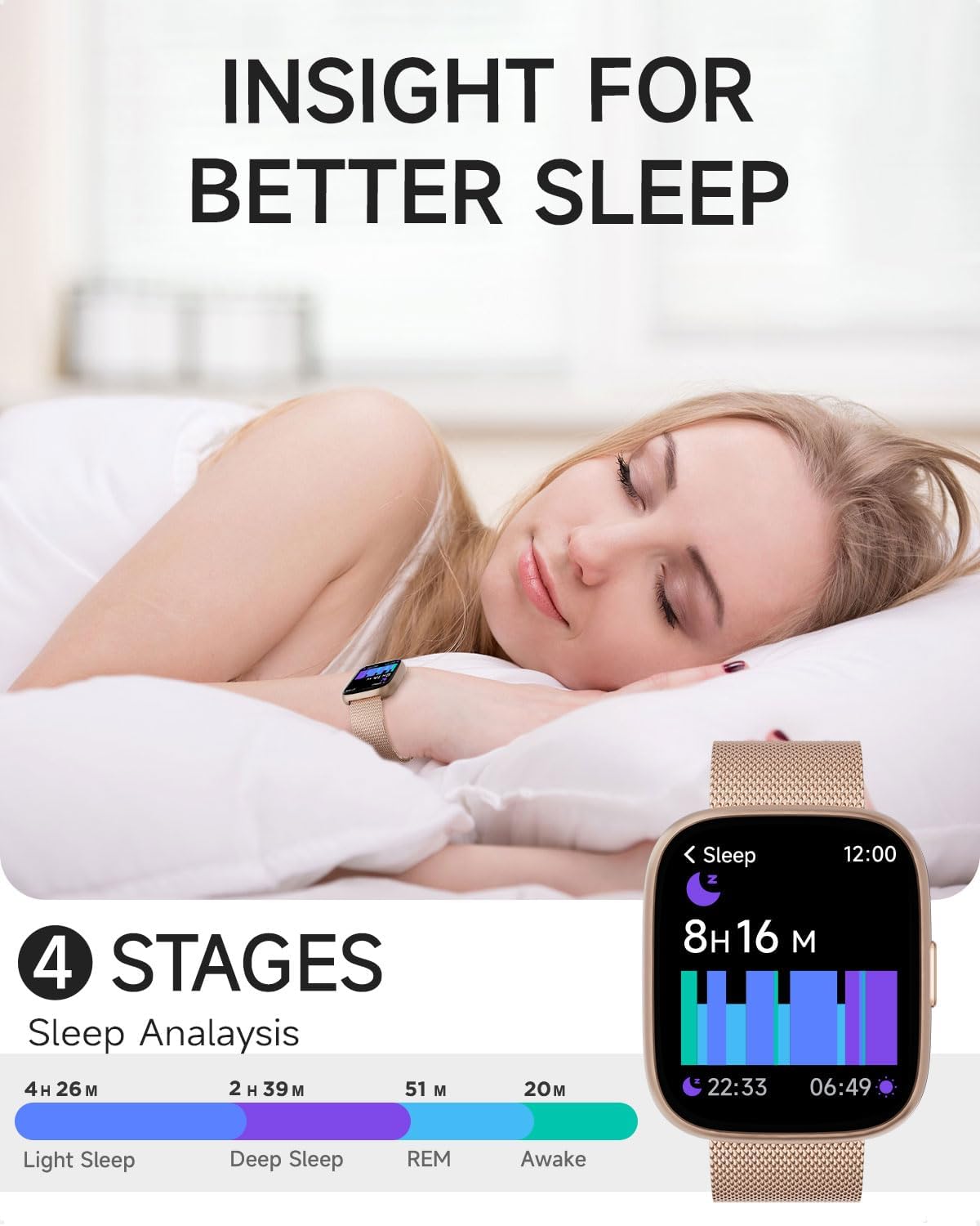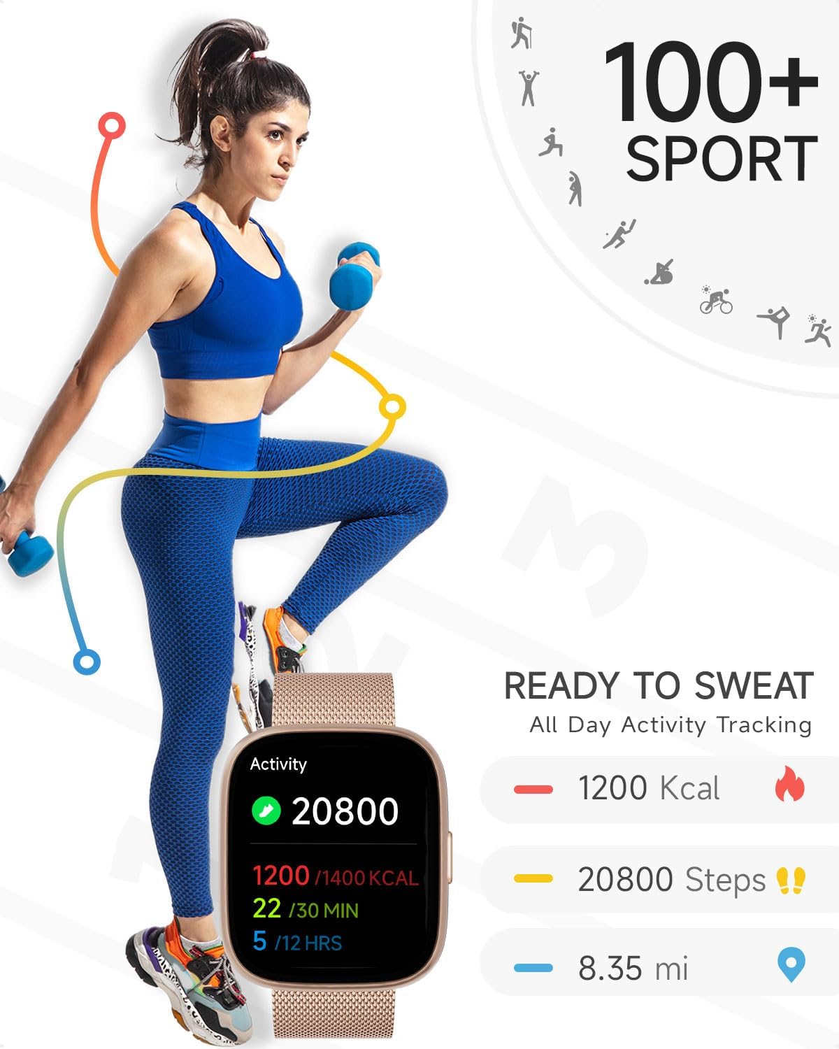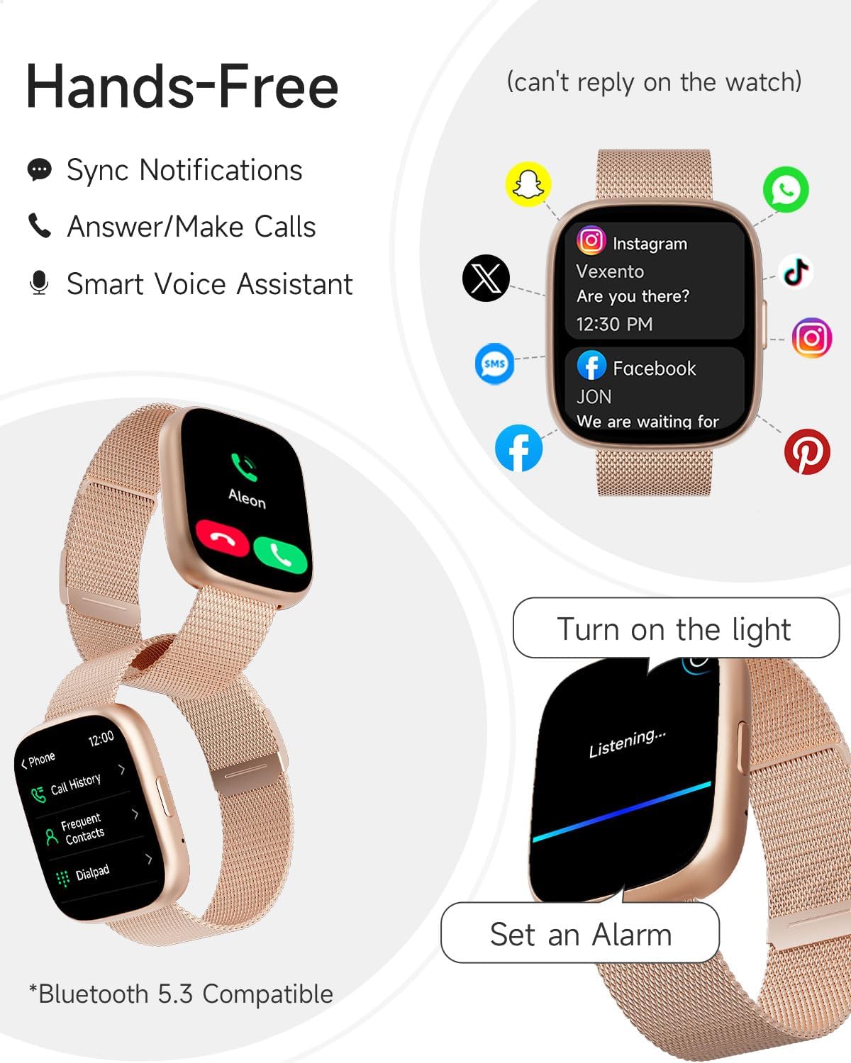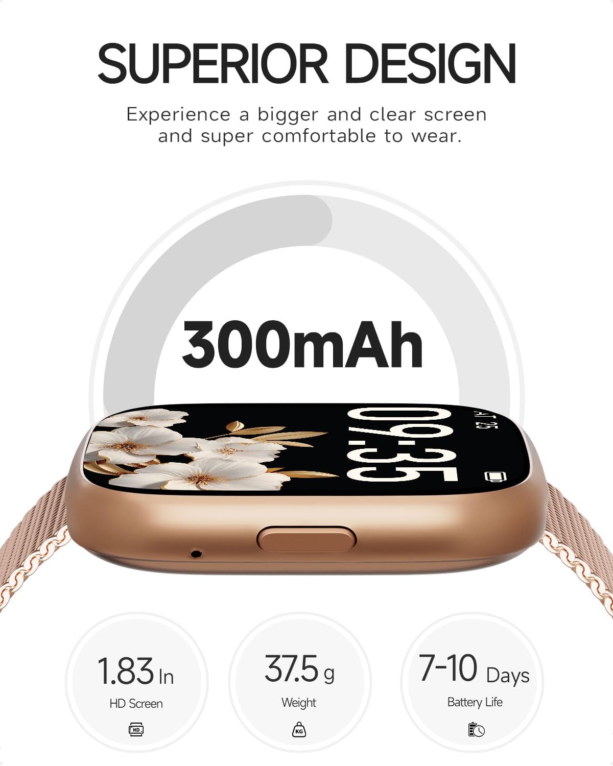HomeSmart Watches Smart Watch for Women, Alexa Built-in, Answer/Make Calls, 1.83″ Fitness Tracker Watch with Heart Rate/Sleep Tracker, Pedometer, IP68 Waterproof Smartwatch Compatible Android iOS Metal