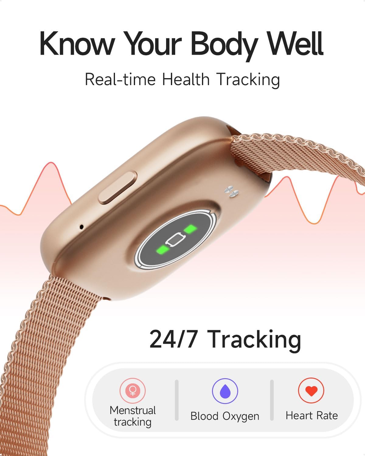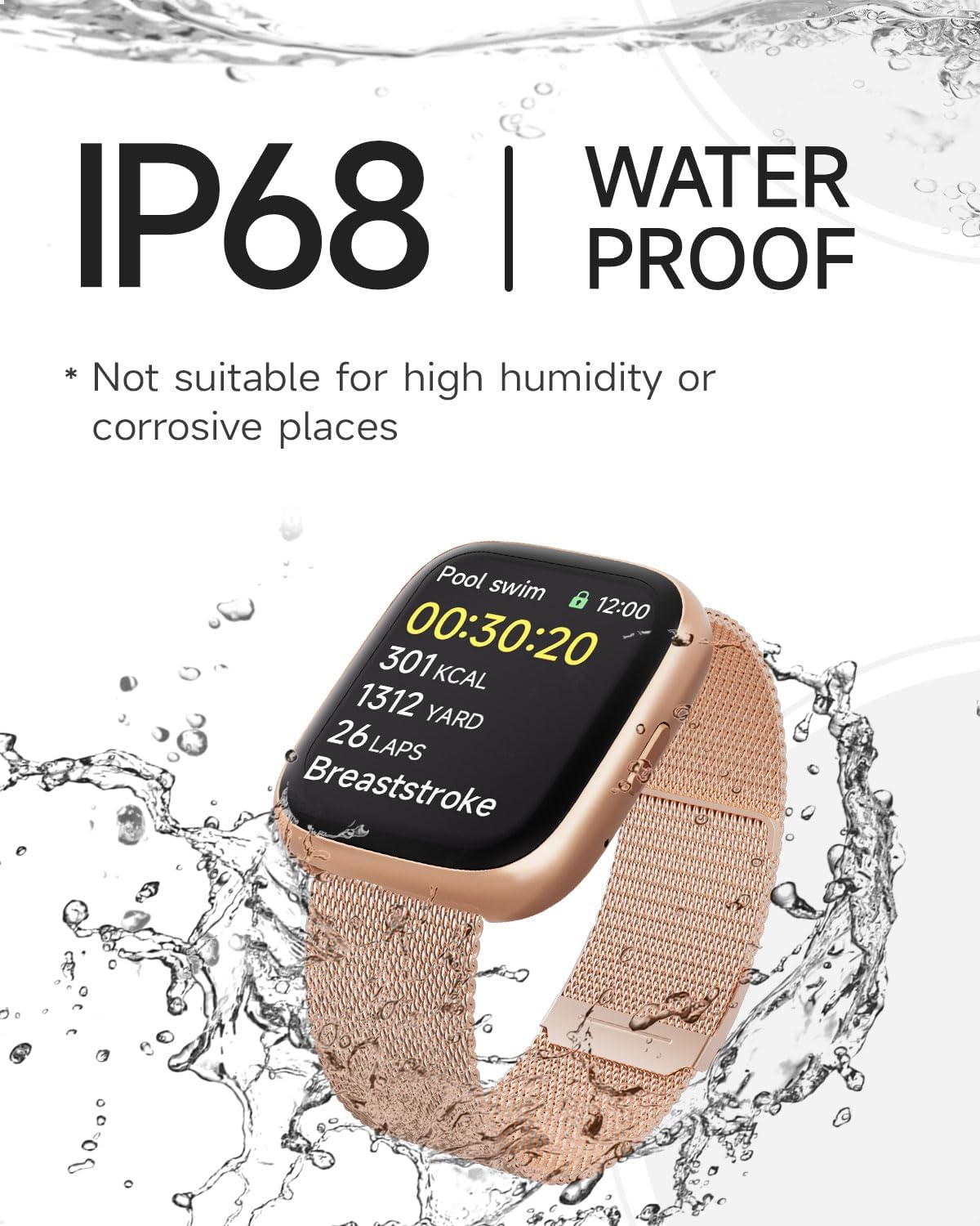 Smart Watch for Women, Alexa Built-in, Answer/Make Calls, 1.83″ Fitness Tracker Watch with Heart Rate/Sleep Tracker, Pedometer, IP68 Waterproof Smartwatch Compatible Android iOS Metal