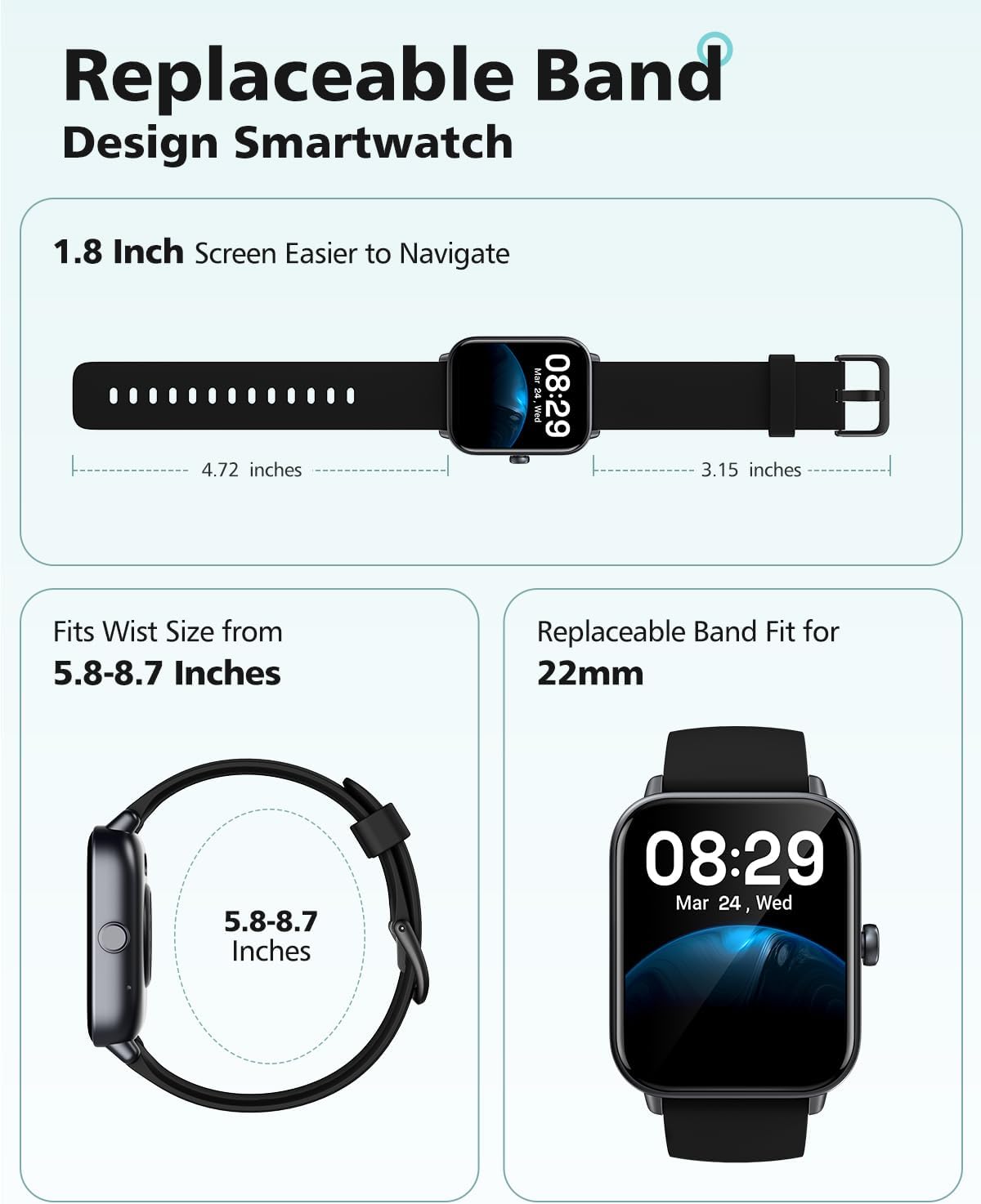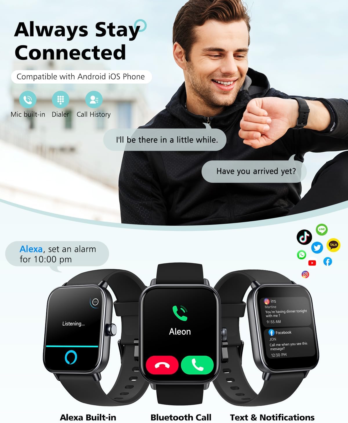 HomeSmart Watches Smart Watch for Women Men Android & iPhone Compatible, Fitness Watch Bluetooth Call & Receive Text, 1.8″ Smartwatch with Alexa/Heart Rate/SpO2/Sleep Monitor/Calorie Step Tracker, 7-Day Battery