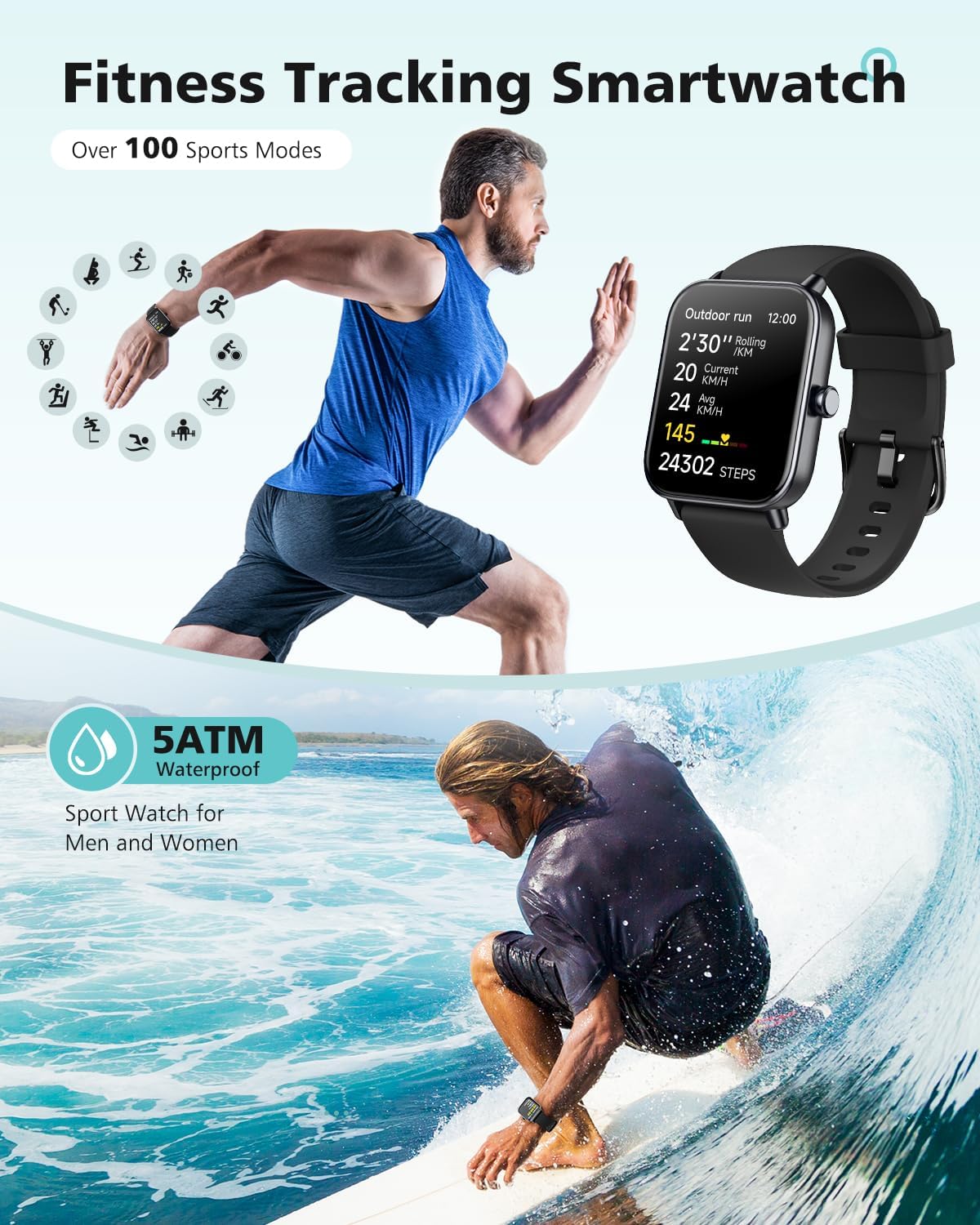 Smart Watch Fitness Tracker with 24/7 Heart Rate, Blood Oxygen Blood Pressure Monitor Sleep Tracker 120 Sports Modes Activity Trackers Step Calorie Counter IP68 Waterproof for Andriod iPhone Women Men