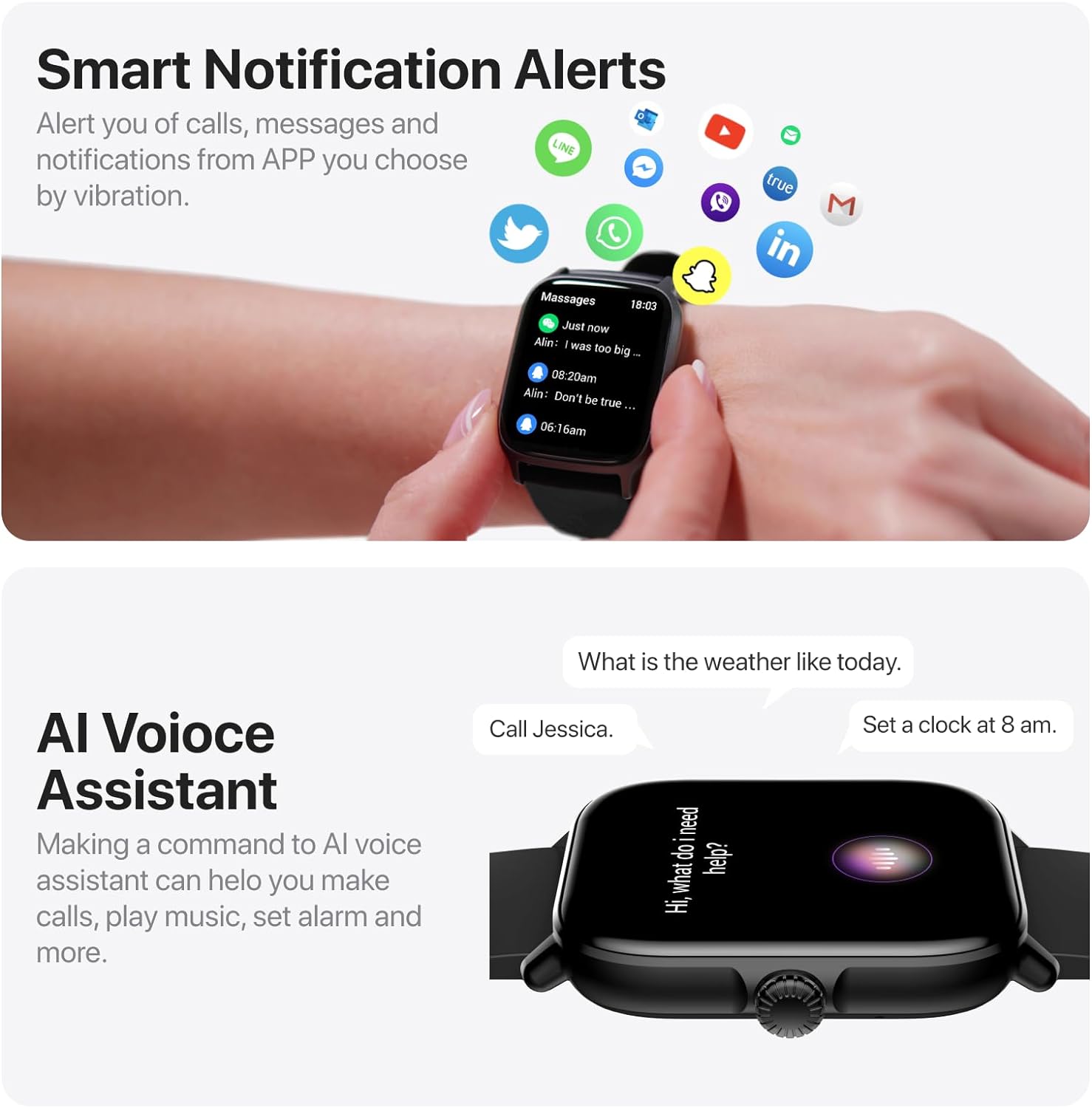 Smart Watch for Women, Alexa Built-in, Answer/Make Calls, 1.83″ Fitness Tracker Watch with Heart Rate Monitor, Sleep Tracker, Pedometer, IP68 Waterproof, Smartwatch Compatible Android iOS