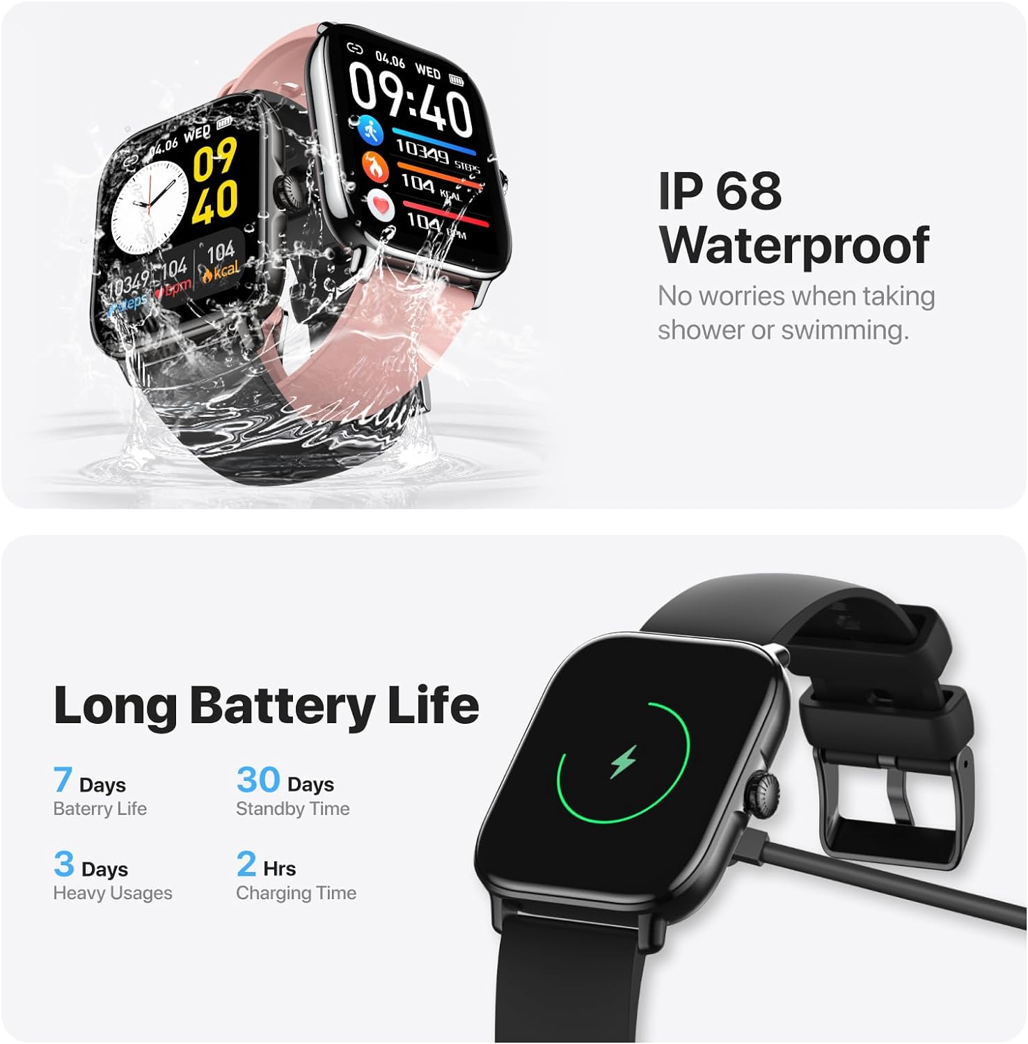 Smart Watch (Answer/Make Call), 2.01″ Smartwatch for Android Phones and iPhone with Heart Rate,Sleep Monitor,Pedometer, 100+Sports Fitness Watch, IP68 Waterproof Fitness Tracker for Men Women
