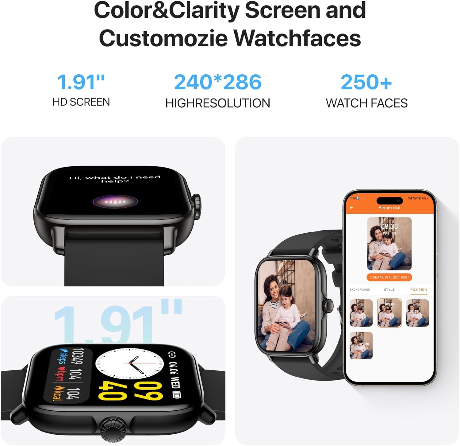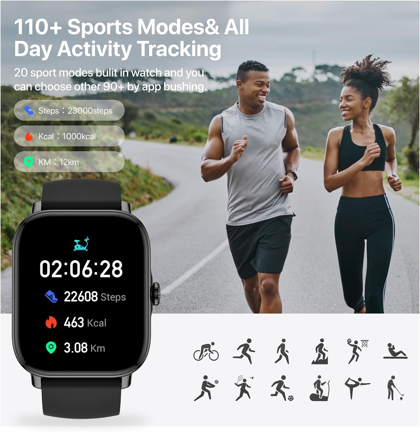 Smart Watch,1.91″ Smartwatch for Men Women (Answer/Make Call),Fitness Tracker with 116 Sport Modes,IP68 Waterproof,Heart Rate/Sleep/Monitor,Long Battery Life,for iPhone & Android & Samsung