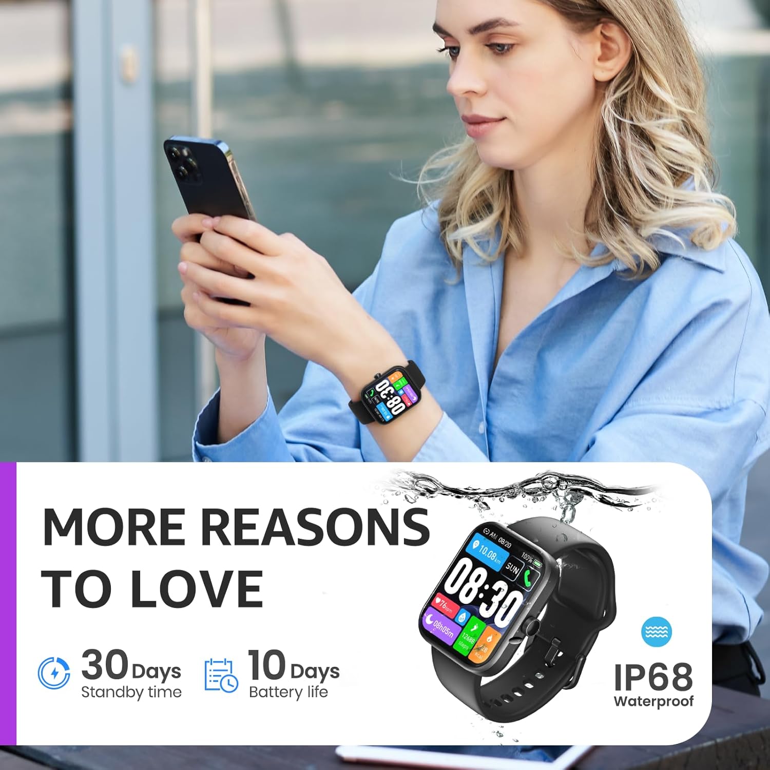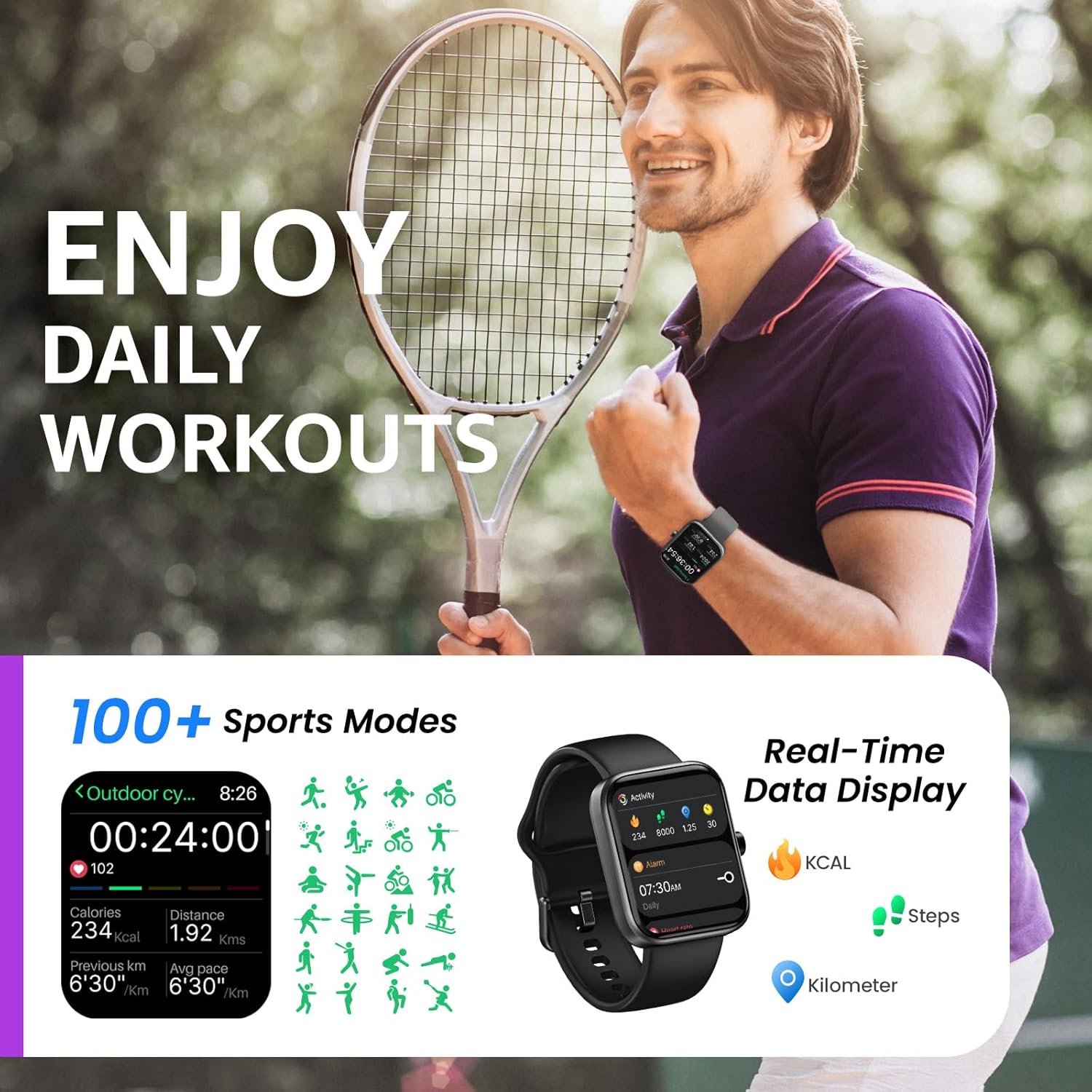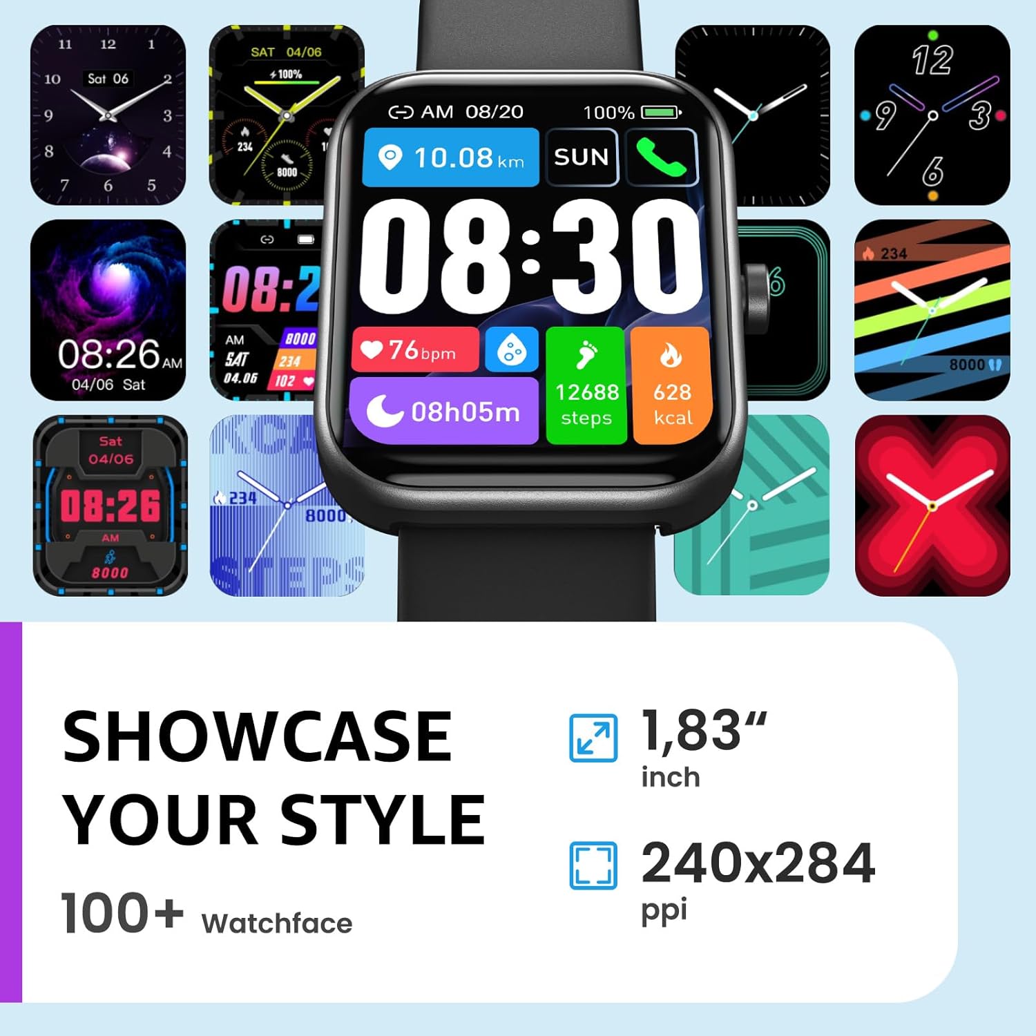 TOZO 2024 New Upgraded Smart Watch for Men Women for iPhone & Android, 1.83″ Fitness Tracker Bluetooth Call [Answer/Make], IP68 Waterproof with Heart Rate/SpO2/Sleep Monitor, 100+ Sport Modes