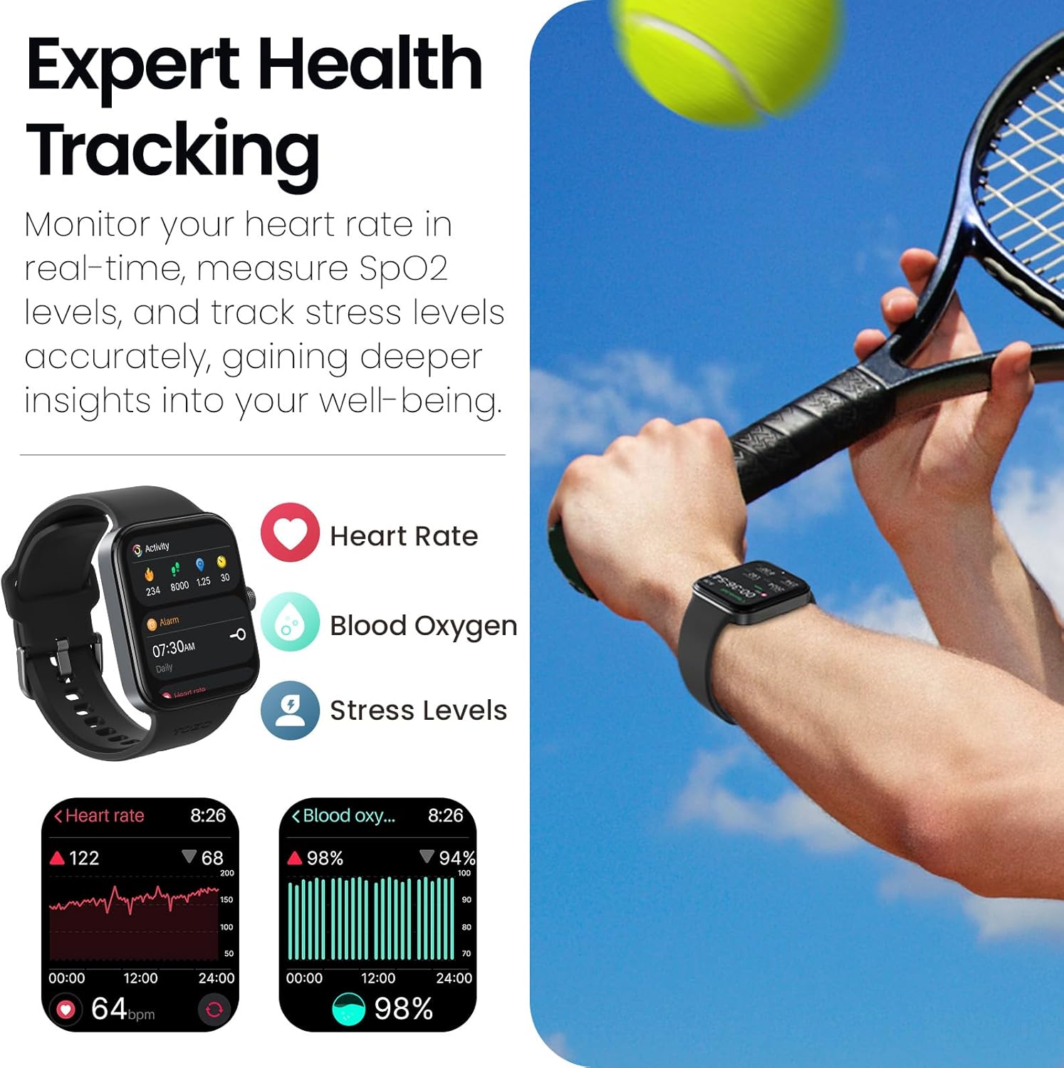 TOZO S4 AcuFit One Smart Watch 1.78″ AMOLED Ultra-Clear Screen for Men Women, Call/Answer Fitness Tracker, Heart Rate Sleep Blood Oxygen Monitor IP68 Waterproof for iOS 11.0+ Android 9.0+ Black
