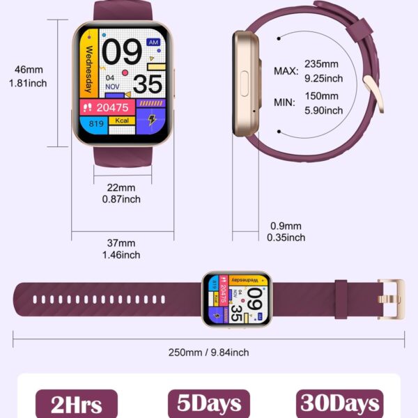 RUIMEN Smart Watches for Women Men (Answer/Make Calls) Compatible with iPhone/Android Phones, 1.85″ HD Screen Fitness Tracker Heart Rate Monitor 100+ Sports Tracker Watch Waterproof (Purple)