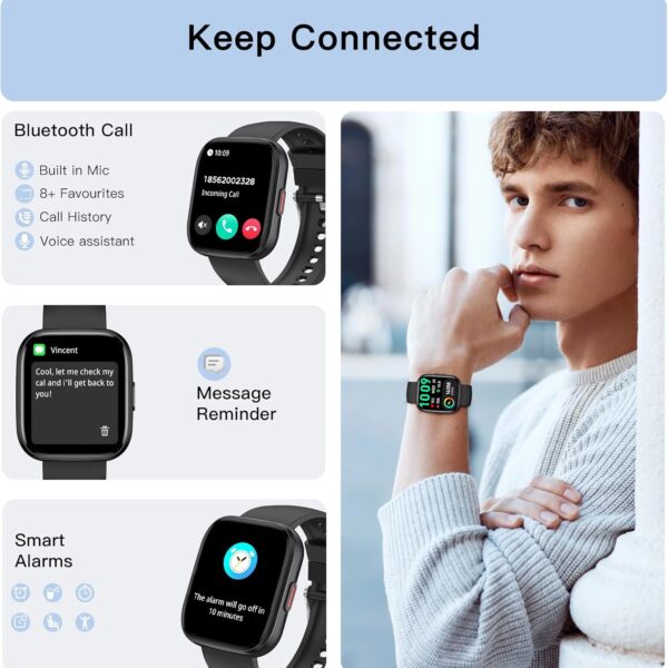 Smart Watch (Answer/Make Call), 2.01″ Smartwatch for Android Phones and iPhone with Heart Rate,Sleep Monitor,Pedometer, 100+Sports Fitness Watch, IP68 Waterproof Fitness Tracker for Men Women