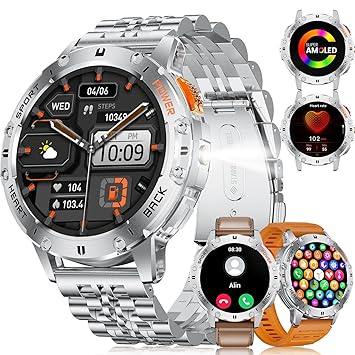 ESFOE Smart Watches for Men AMOLED Military Smart Watch for Men with LED Flashlight