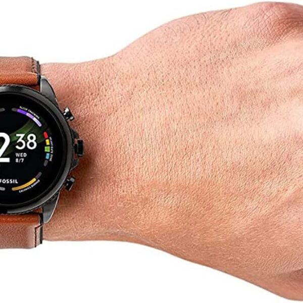 Fossil Men’s Gen 6 44mm Stainless Steel and Leather Touchscreen Smart Watch, Color: Black, Brown (Model: FTW4062V)